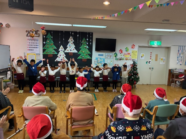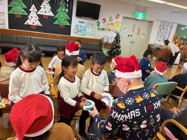 12月18日(木)に江見保育園の5歳児12名と通所リハビリテーション利用者19名で「クリスマス交流会」を行いました。